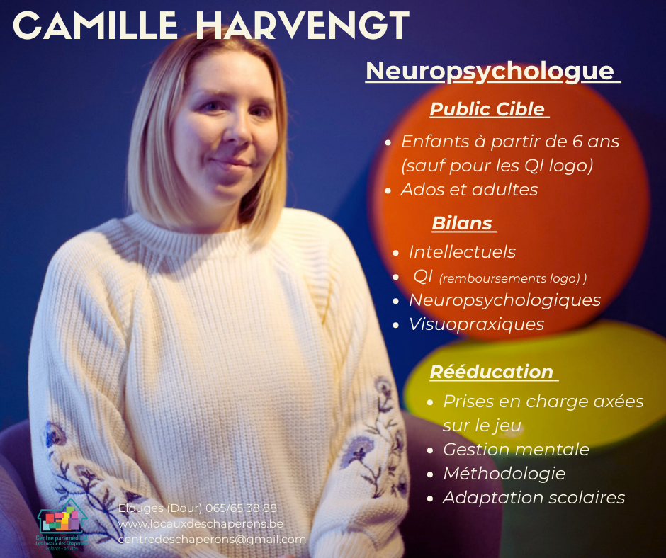 Lors de mon bachelier, j’ai éprouvé un grand intérêt pour la neuropsychologie qui s’est révélée très intéressante à mes yeux. J’ai alors décidé de réaliser ma spécialisation dans ce domaine. Lors de mes stages, je me suis centrée sur une population jeune (enfants et adolescents) dans laquelle je me suis spécialisée. J’ai obtenu mon diplôme de Master en sciences psychologiques, à finalité spécialisée (neuropsychologie) en septembre 2019 et j’ai débuté mes consultations en octobre 2019 dans un centre pluridisciplinaire où j’ai réalisé mon stage de dernière année de Master.