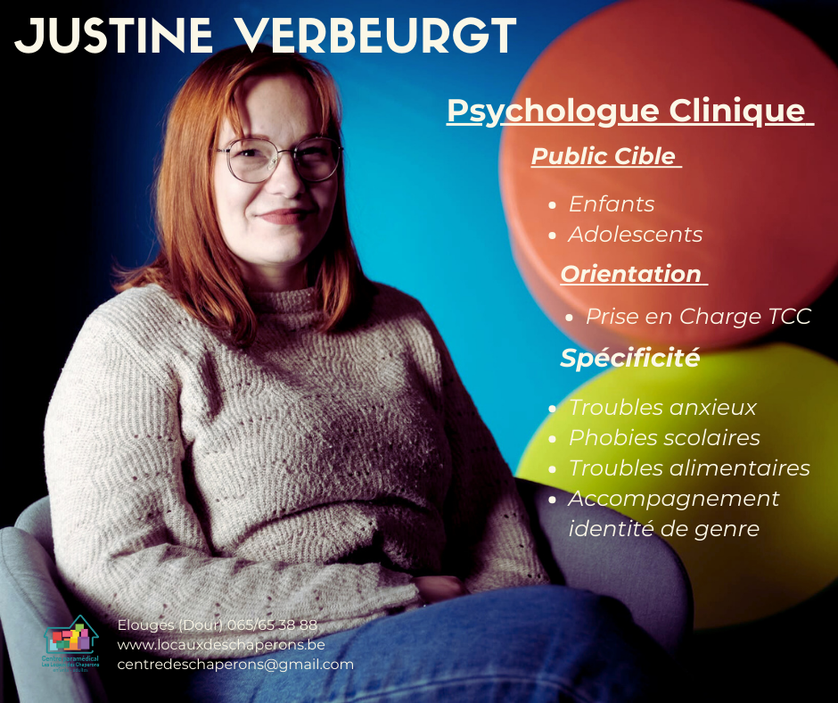 Diplômée de l’UMons depuis 2017, j’ai décidé d’entreprendre une formation en thérapie émotivo-cognitivo-comportementale en vue d’approfondir mes connaissances et mes outils de prise en charge. Cette approche, moins connue que d’autres branches de la psychologie, consiste à mettre en lien les émotions, les pensées et les comportements visibles. Elle demande une collaboration active des parents, de l’enfant (des enfants) et du psychologue pour analyser, comprendre et agir sur ce qui pose problème.
